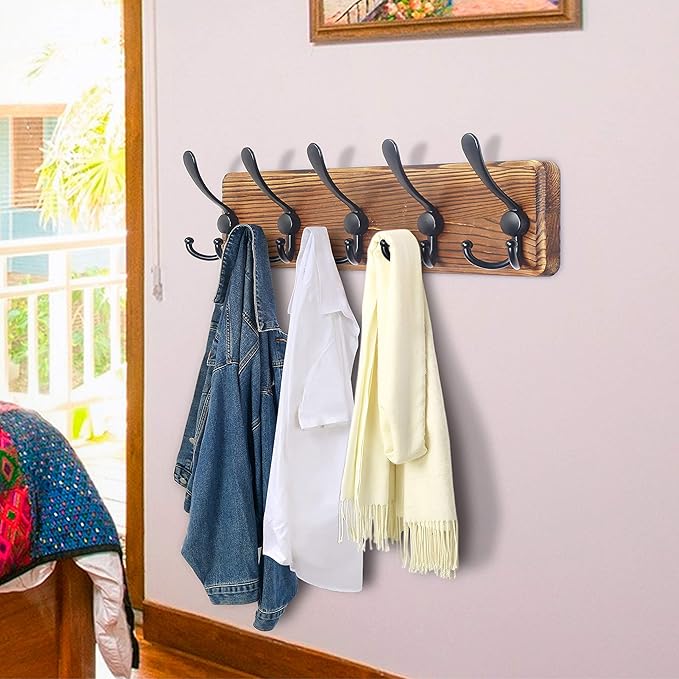 - 【HANGS A LOTS:】This wall hanger features 5 tri hooks, providing ample space to organize coats, clothes, towels, hats, bags, and more. It is ideal for entryways, bathrooms, mudrooms, and closets.
