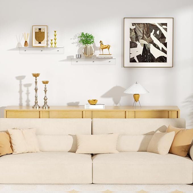 - Stylish and Elegant: The unique floating design and clear acrylic material make FEMELI wall shelf blend well with your bathroom, bedroom, living room, kitchen, office, garage and any other space, your items or artwork look like they are floating in the air, this makes your space look neat and stylish