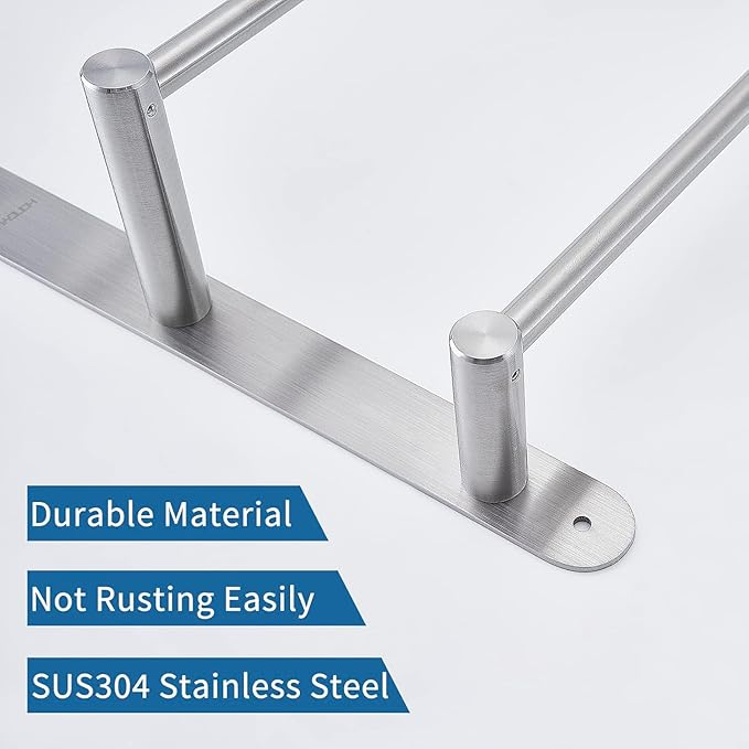 - Brushed Finish:Each towel bar is polished to make it smooth and round.The edges are round and comfortable, so you don’t have to worry about scratching your hands. It can be cleaned by wiping gently with a wet towel, which is convenient for maintenance.The simple design makes it easy to match various bathroom styles