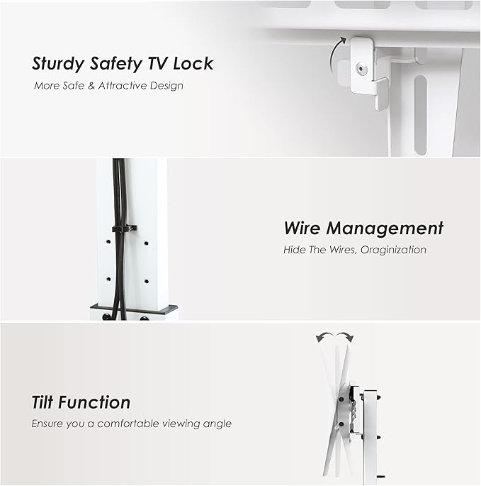- Easy Assembly with Installation Manual: There’s no need to drill your beautiful wall, and it is easy to put together according to the installation manual. FITUEYES TV stand with mount provide necessary tools and hardware to get your TV mounted, instructions are pretty straight forward
