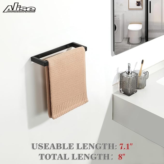 Alise Bath Towel Bar,Wall Mount Towel Holder Towel Rack Towel Hanger for Bathroom Lavatory,8 Inch SUS304 Stainless Steel Towel Rail,Matte Black GJF020-B