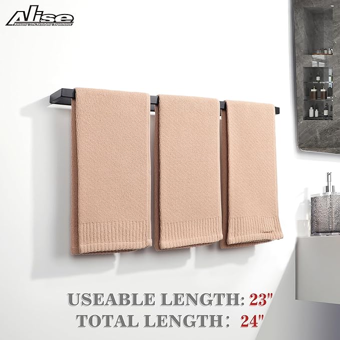 Alise Bath Towel Bars,24 Inch Towel Holder Towel Racks for Bathroom and Lavatory,SUS304 Stainless Steel Hand Towel Hanger Rail Wall Mount,Matte Black GJF060-B