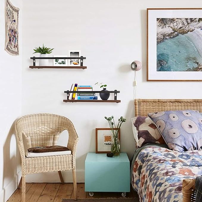 Floating Shelves,Wall Mounted Shelf for Kitchen,Living Room,Bedroom,Bathroom Storage,Rustic Wood,Set of 2(Brown)