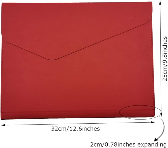 - STYLISH AND ATTRACTIVE: This leather envelope folder surface made by PU leather which waterproof and easy to take in hand or in your backpack. Bright color envelope folder has a sleek fashion design style that's a great decorative compliment in your office or home.