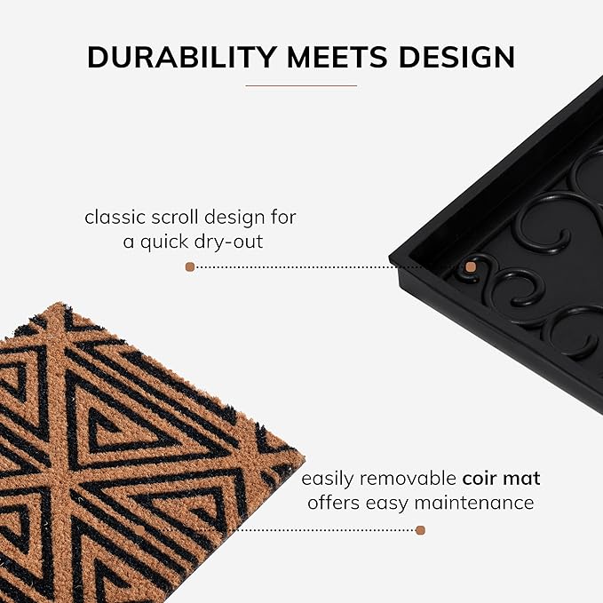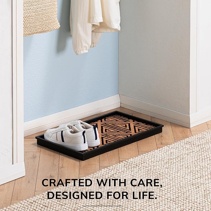 - Made using 100% Woven Coir: This rubber boot tray is meticulously crafted using 100% woven coir (coconut fiber), offering a sustainable and durable solution for your home. The natural fibers of coir are renowned for their toughness and ability to withstand daily wear and tear, ensuring that this boot tray for entryway remains a functional and eco-friendly addition for years to come.