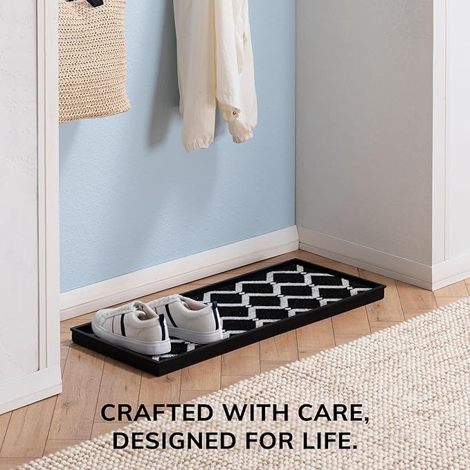 Anji Mountain Heavy Duty Waterproof Rubber Shoe Storage Mat Organizer/Boot Storage Tray Multi Use for Entryway with Coir, Black and Ivory Insert, Fits 3 Pair (34.5" Wide)