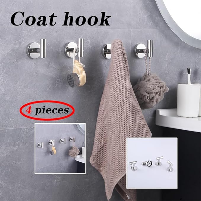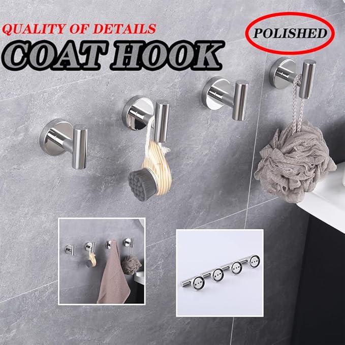 GERZWY Bathroom Towel Hook SUS 304 Stainless Steel Coat/Robe Clothes Hook for Bath Kitchen Modern Hotel Style Wall Mounted 4 Pack Polished Finish AG1307B-JG