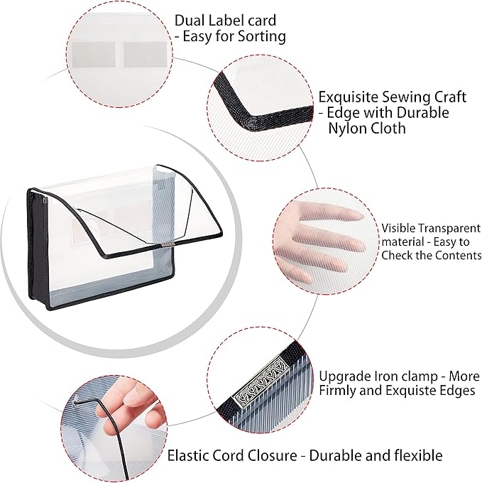 - 【File Wallet with Cover Flap and Cord Closure:Plastic folders fold-over cover flap with elastic cord closure for keeping documents securely contained when storing or during transport, no need worry stored papers spilling out.