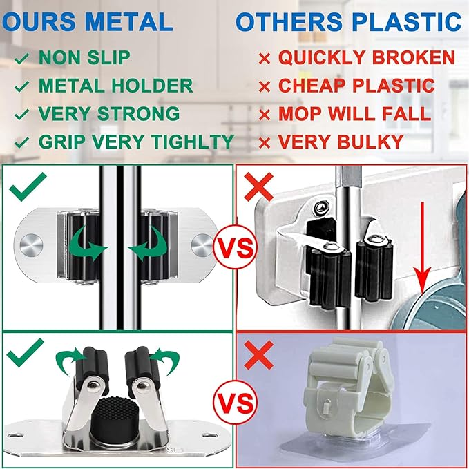 - Multi-purpose -Whether indoor or outdoor, The Heavy Duty mop holder can help you save space,Perfect for the kitchen, closet, bathroom,garage, utility room, office and ect