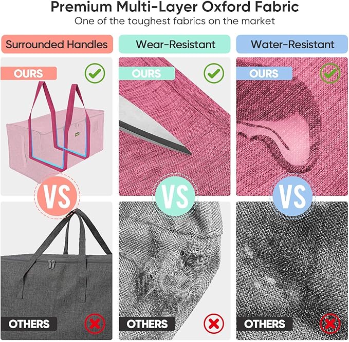 - [✔️ LARGE & PREMIUM MATERIAL]: 23.6'' x 11.8'' x 11.8'' and up to 14 Gallon volume. The totes are made with 900D oxford fabric PVC coated material and premium lining that provides an excellent waterproof performance. The oxford storage tote is an alternative for moving box and organizer. Perfect for space saving, clothes storage, moving, camping and more.