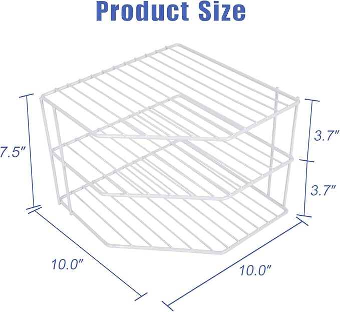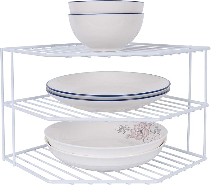 3-Tier Corner Shelf Counter and Cabinet Organizer - Steel Metal Wire - Rust Resistant - Plates, Dishes, Cabinet & Pantry Organizer - Kitchen Organization (10 x 7.5 Inch)(White)