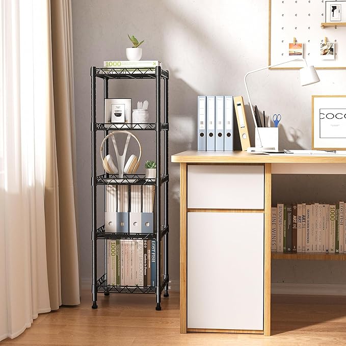 - DECENT SIZE: The shelf unit only takes up 11.8” x 11.8” but offers 5 tiers of storage, perfect for use in narrow space or room corner to store odds and ends, etc