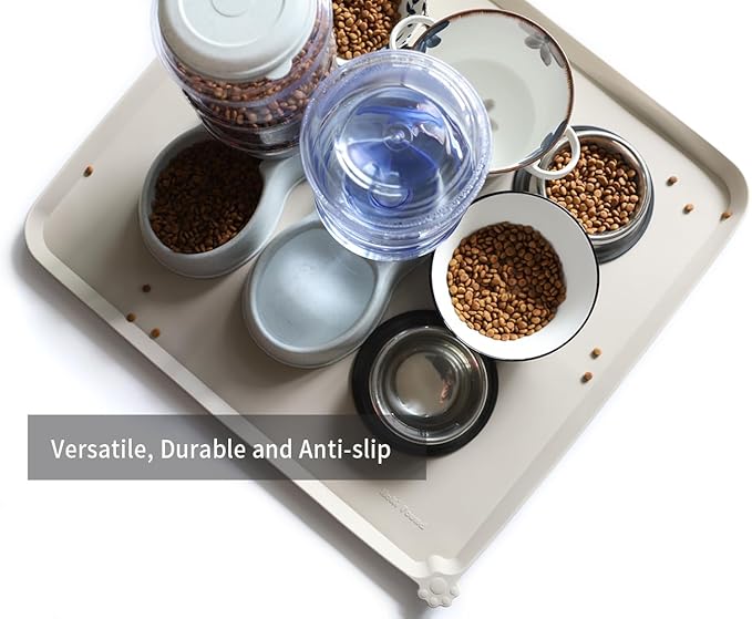 Hoki Found XX-Large Silicone Pet Feeding Mats - Non Slip Dog Cat Bowl Placemats - Waterproof for Carpet - Cream Brown