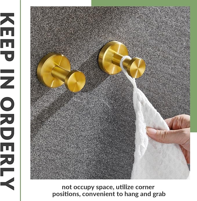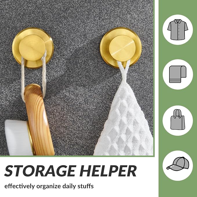 APLusee Brushed Gold Bathroom Towel Hooks 2 Pack, 304 Stainless Steel Robe Hooks for Kitchen Garage, Wall Mounted