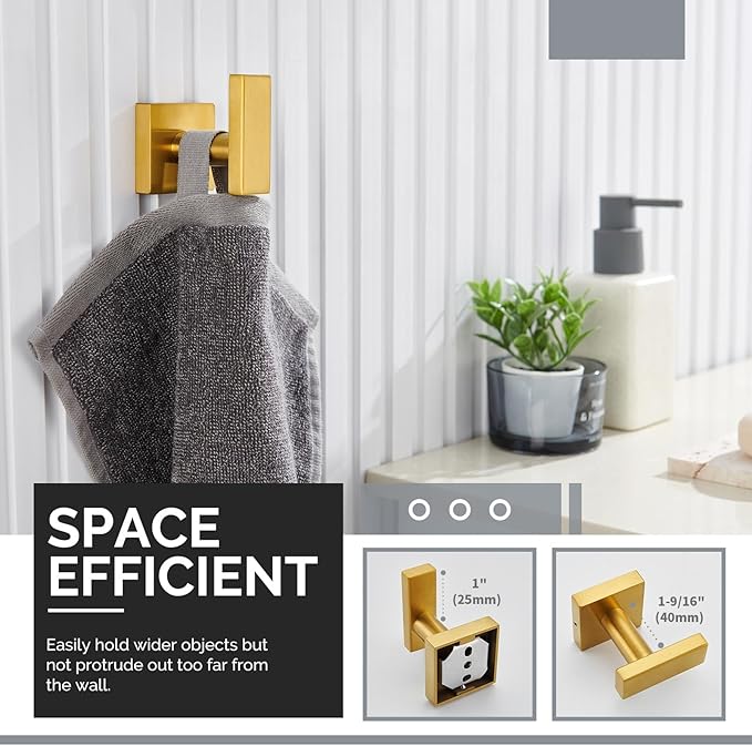 - VOGUE & GRACEFUL COMPLEMENT: inspired by simple geometric element, aesthetically combines square hook with round supporting rod, dark gold tone blends well with your other gold fixture
