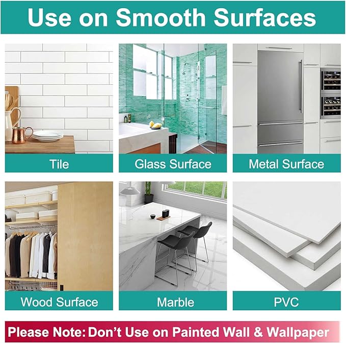 - Used on Different Surfaces: Black sticky hooks can be used on: Tile, Glass, Marble, Wood, PVC, Stainless Steel, Metal, or other Smooth Surfaces. (Not recommended for painted walls or wallpaper)
