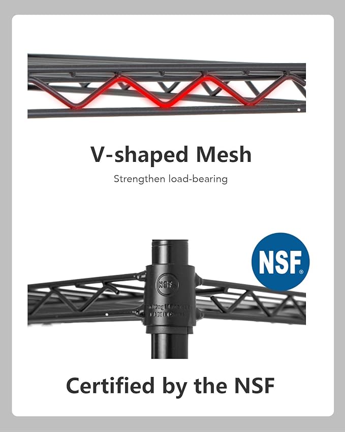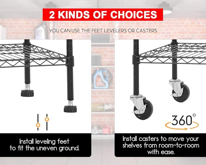 - ✔【Strong Weight Capacity】Without wheels, the weight limit for each shelf is 1000 pounds and the total weight limit for the entire shelf is 6000 pounds.When commercial wheels are mounted, the weight limit for each shelf is 100 pounds and the total weight limit for the entire shelf is 600 pounds.