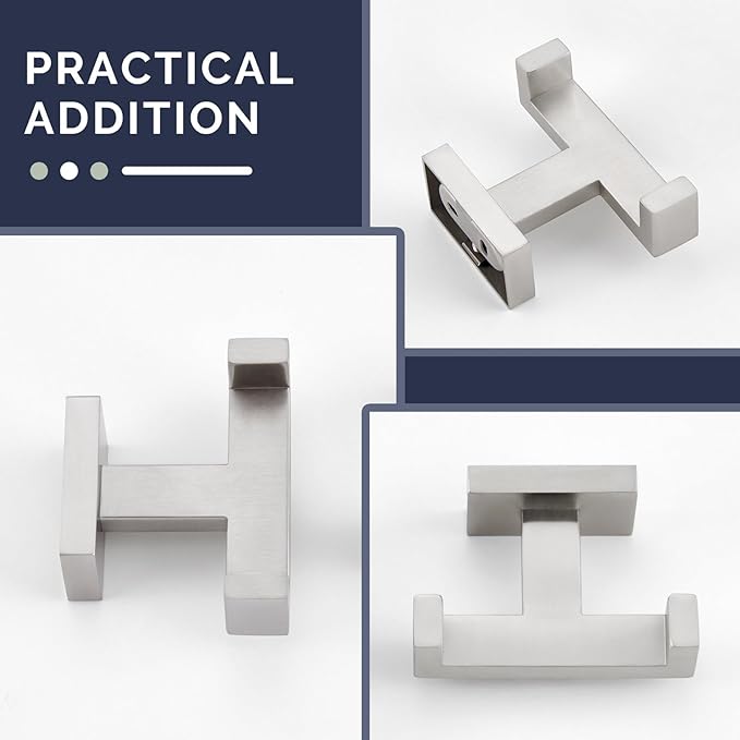Angle Simple Bathroom Double Hook 2 PCS, SUS304 Stainless Steel Hand Towel Holder, Bath Towel Hanger, Modern Robe Hook for Wall, Brushed Nickel
