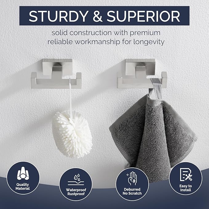 - CONVENIENT FOR EVERYDAY USE: right-angled hooks for easily hanging up robes and towels, no more fumble with placing towels through the rounded holder, neatly holds things in place without falling off on the floor