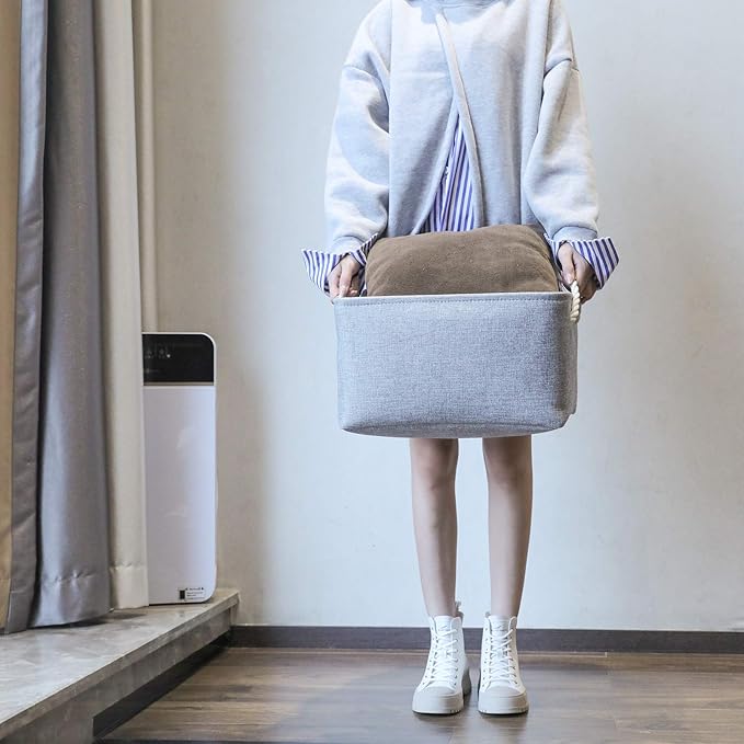 - Organize and Store: The canvas storage baskets can be folded when not in use. Lightweight for carrying and organizing. The design without strong longitudinal support also makes them more flexible to use. You can put them in the middle of the bedroom, children's room, or living room because they don't have hard edges and corners that hurt the kids.
