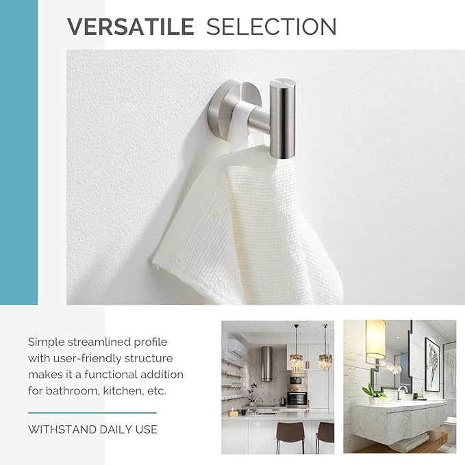 Angle Simple Robe Towel Hook, SUS 304 Stainless Steel Bathroom Hand Towel Coat Hook for Wall, Brushed Nickel