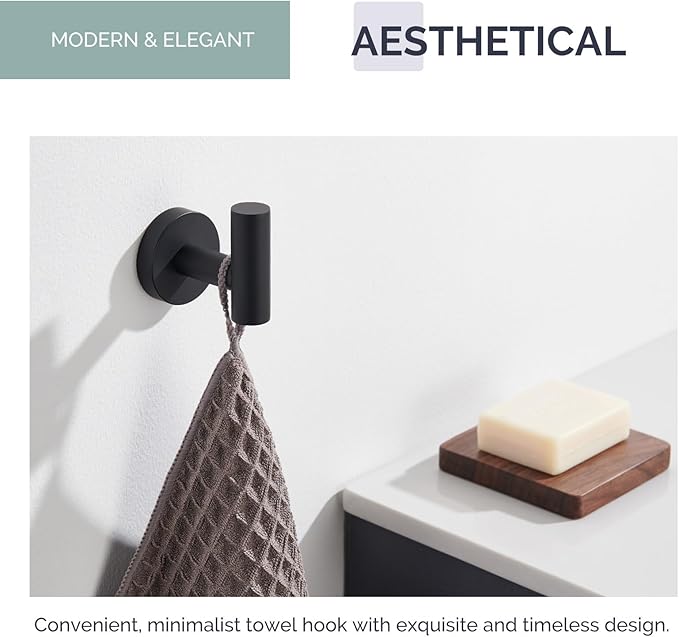 Angle Simple Towel Hook for Bathroom, Stainless Steel Robe Coat Hook for Wall, Hand Towel Hanger, Matte Black