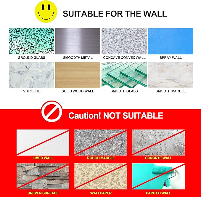 - 【APPLICABLE WALL】Adhesive towel hooks suitable for smooth walls,such as glass, tiled walls and marble walls. Do not apply this product on uneven surface,such as drywall, wallpaper, paint wall.See picture for details.