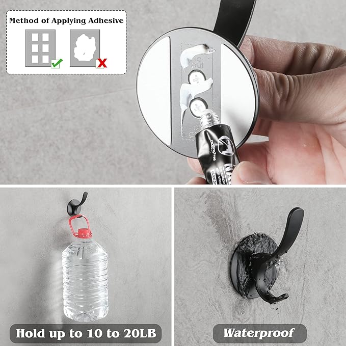 - 【EASY INSTALLATION】Towel hooks NO DRILLING.Install using Nail-Free adhesive and auxiliary stickers to the wall.Package comes with accessories and installation instructions.