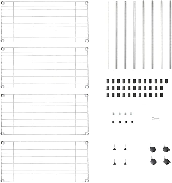 - Displays by Jack's metal shelves 4 tier wire shelving units include 4 nylon casters wheels (2 Locking) for easy mobility as well as 4 wide leveling feet.