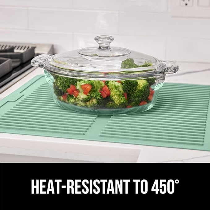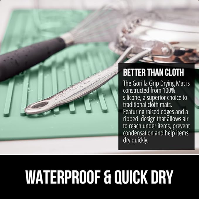 GORILLA GRIP 100% BPA-Free Patented Silicone Dish Drying Mat for Kitchen Counter, 18x24 Inch, Water Catching Ribbed Design, Easy Clean Waterproof Sink Liner, Heat Resistant, Fits Under Rack, Mint