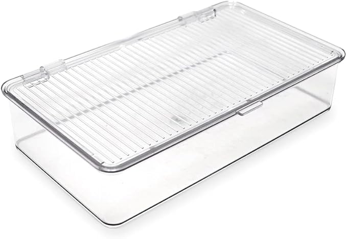- MULTI-USE: Maximize space by storing smaller items in one bin. Organization feels good and looks good with our hinged lid stackable box. (Parents, teachers, and office managers - you’ll thank us later.) From precious greeting cards, photos, small collectibles, jewelry to everyday goods like bandages and first aid. You’ll stay organized and protect your items from potential damage or dust.