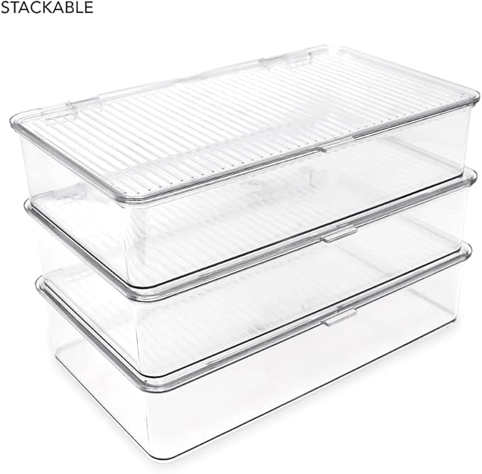 Isaac Jacobs Small Stackable Organizer Bin (10.75” x 6.5” x 2.4”) w Hinged Lid Clear Storage Box Home Office School Fridge Bathroom Kitchen Pantry Container BPAFree Food Safe (Small Clear)