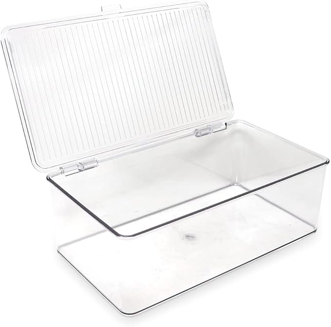 - MULTI-USE: Maximize space by storing smaller to medium-sized items in one bin, and become the organized adult you’ve always wanted to be! Store pasta, candy, snacks, coffee pods in the pantry; makeup, art & sewing supplies, cards, photos, collectibles, and memorabilia in your studio. You’ll stay organized and protect your items from potential damage or dust with our hinged lid stackable box.
