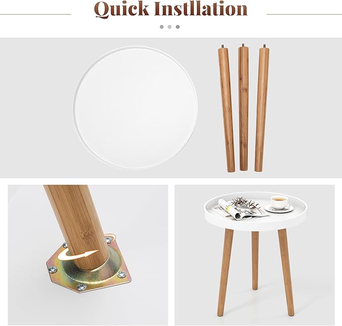 - Durable & Sturdy Structure: This side table is constructed of a wood tray and 3 triangular bamboo legs, which ensures long-lasting durability and super load-bearing capacity. It can bear a maximum load of 11LBS. More, the high quality screw keeps it more stable without shaking.