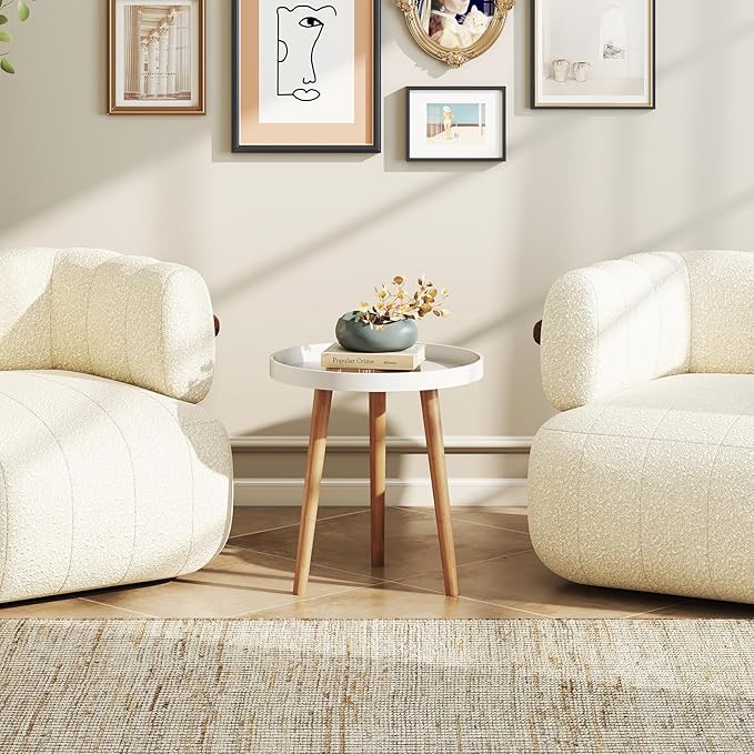 Giantex Round Side Table, End Table with Wooden Tray, Sturdy Tripod Stand & Premium Metal Connectors, Round Sofa Side Table for Living Room, Office, Bedroom Nightstand, White (1)