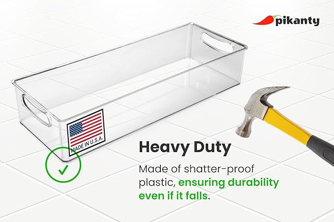 15-Inch Refrigerator Organizer Bin with Handles - Clear Plastic Storage for Fridge, Pantry, or Countertop - Dishwasher Safe - Made in the USA