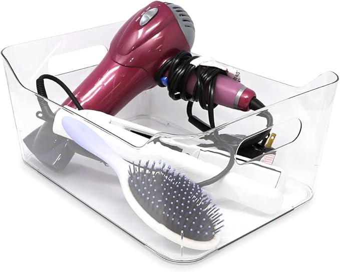 - CLEAR ORGANIZATION: Organization is easy with these large plastic storage bins. Discover an easy way to maximize space and get organized. Place the matching bins side by side in the playroom or office, or hide in the cupboard or pantry and take out when needed. These containers are clear so you can see what’s inside, while the cutout handles & open top allow for quick access. Our clear organizers are durable & hold your essentials in one spot, from first aid to your favorite shoes.