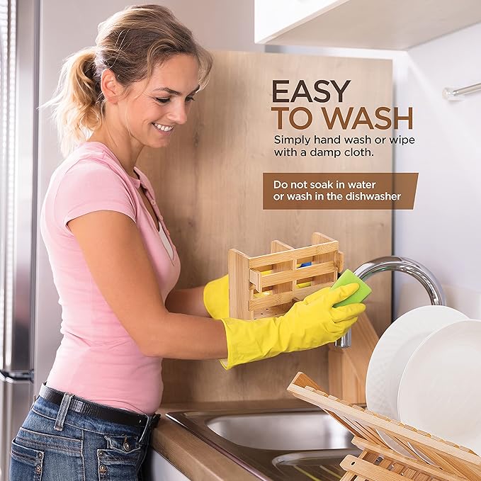 - READY TO USE Utensil drying caddy is ready to use straight out of the box. No assembly needed. It’s lightweight, yet durable. Cleans easily: hand wash with mild soap or wipe with damp cloth. Then air-dry utensil holder before putting away. Do not soak or wash in the dishwasher.