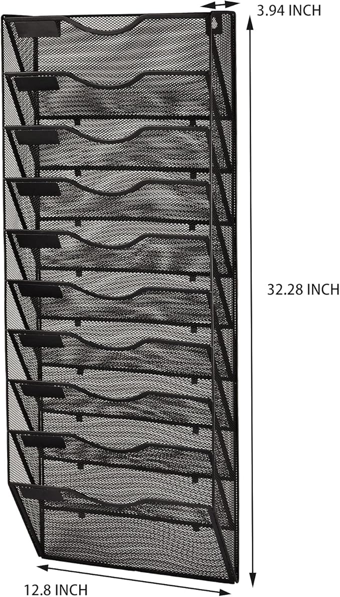 - 10 Pockets: The wall file organizer comes with mounting screws that can be easily mounted on the wall