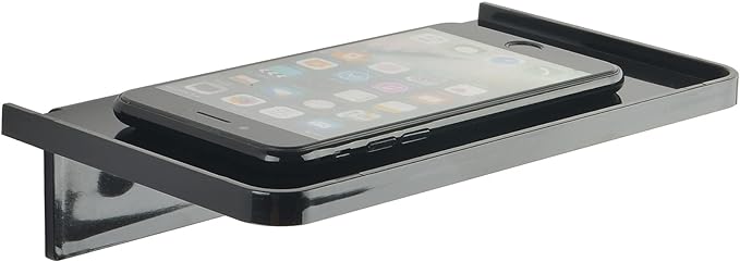 Acrylic Floating Wall Shelves - Small Stick-on Wall Mounted Phone Shelf Holder Wipes Rack Smart Speaker Shelf for Bathroom,Kitchen,Toilet,Bedroom,Office - Black