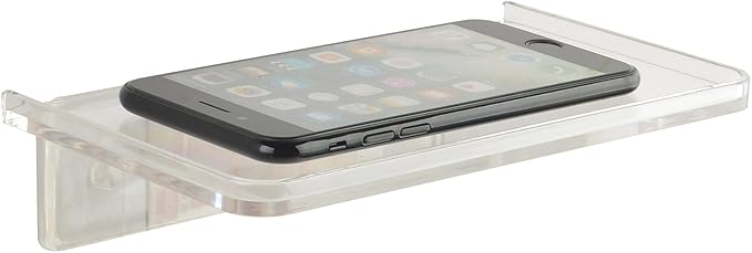 - [Versatility] This acrylic shelf is universally suitable for nearly every daily life places:bedroom,bathroom,toilet,kitchen,living room,RV,office.Good idea to set it at limited small space or at bedside,entryway wall,next to toilet,at side of locker etc. to hold or display phone,watch,cigarette,wallet,keys,reading glasses,little bluetooth speaker,wet wipes,tissues,toilet paper,little toys,toothbrush,toothpaste and more small items.Super multiple purpose!