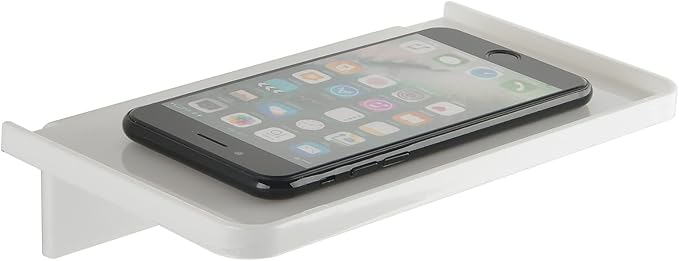 Acrylic Floating Wall Shelves - Small Stick-on Wall Mounted Phone Shelf Holder Wipes Rack Smart Speaker Shelf for Bathroom,Kitchen,Toilet,Bedroom,Office - White