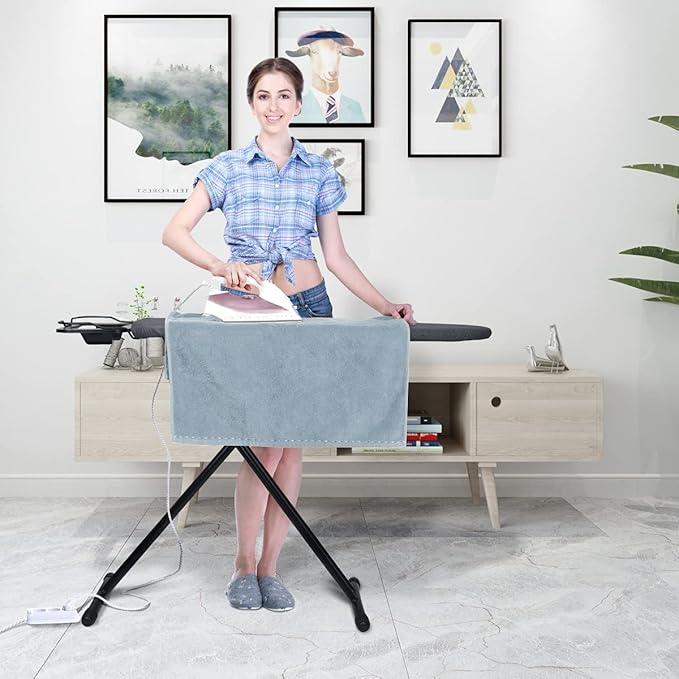 - Extra Cover Felt Padding:Comes with a 100% cotton material heat resistant washable cover(elastic cord design on the edge)and 10 mm felt padding not the inferior foam pad, thick enough, will not mark your clothes, to keep a good ironing experience