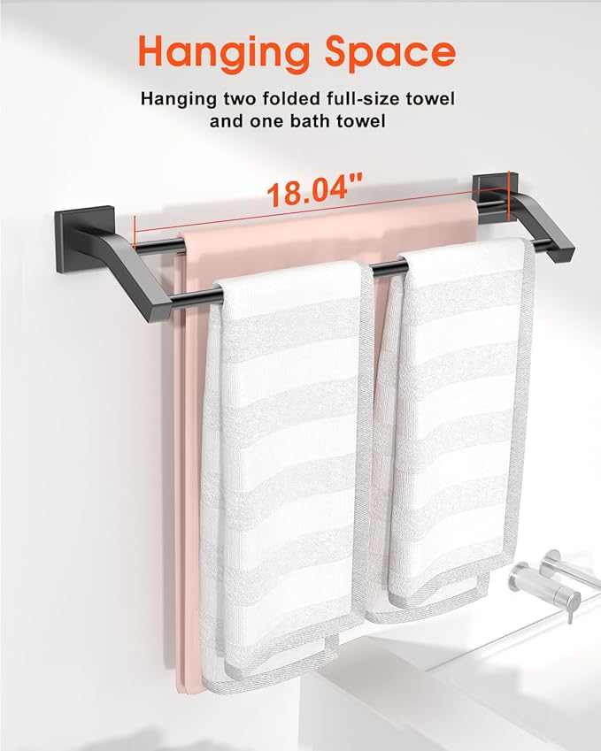 Alise Bath Double Towel Bars Towel Racks for Bathroom,Wall Mount Towel Holder 20-Inch Heavy Duty SUS304 Stainless Steel Towel Hanger Rail,GK9500-B Matte Black