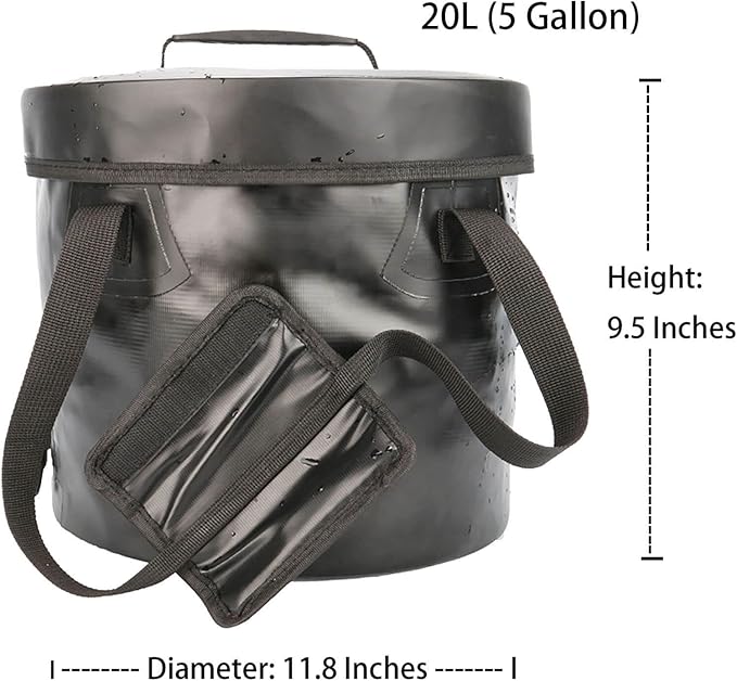- Easy to carry and use - Portable Folding Bucket with Lid, Storage Bag and a handy tool, Large Capacity: 20L (5 gallon )