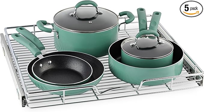 - HIGH QUALITY: Made of durable metal with chrome finish the pull out shelf for kitchen cabinet is simple and easy to install. Designed to fit any style of cabinetry and easy to clean.