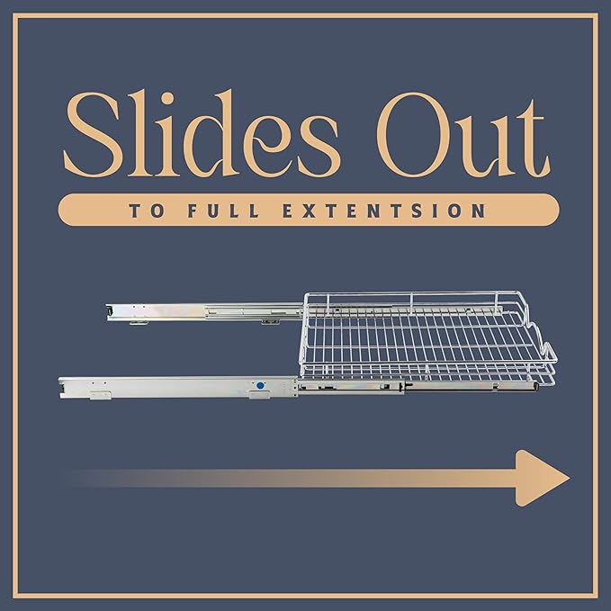 - LARGE CAPACITY CABINET DRAWERS SLIDE OUT: Sliding cabinet shelf dimensions are 22”W x 17”D x 3.25” and includes step by step instructions with all necessary hardware.