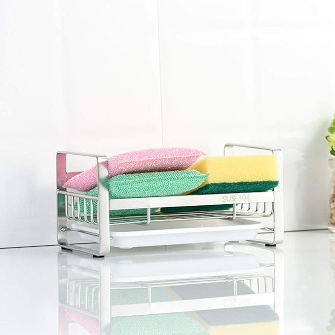 - Stainless steel material, waterproof and rust protection. Open design allows water to drain, sponges and scrubbers air dry quickly.