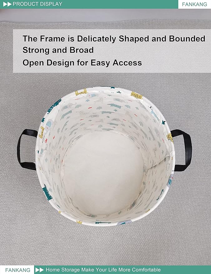 FANKANG Storage Basket, Nursery Hamper Canvas Laundry Basket Foldable with Waterproof PE Coating Large Storage Baskets for Kids Boys and Girls, Office, Bedroom, Clothes,Toys(Froest animals)
