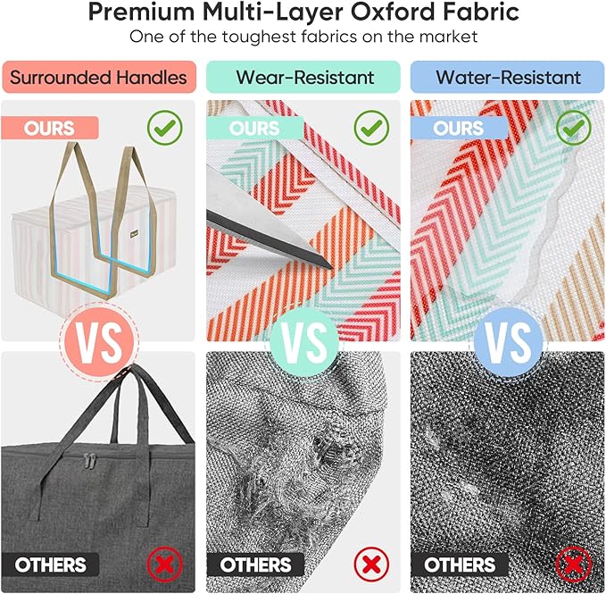 BALEINE Extra Large Storage Tote with Zippers & Carrying Handles, Heavy-Duty Oxford Fabric Moving Bags for Laundry, Space Saving, Storage, Color Stripe